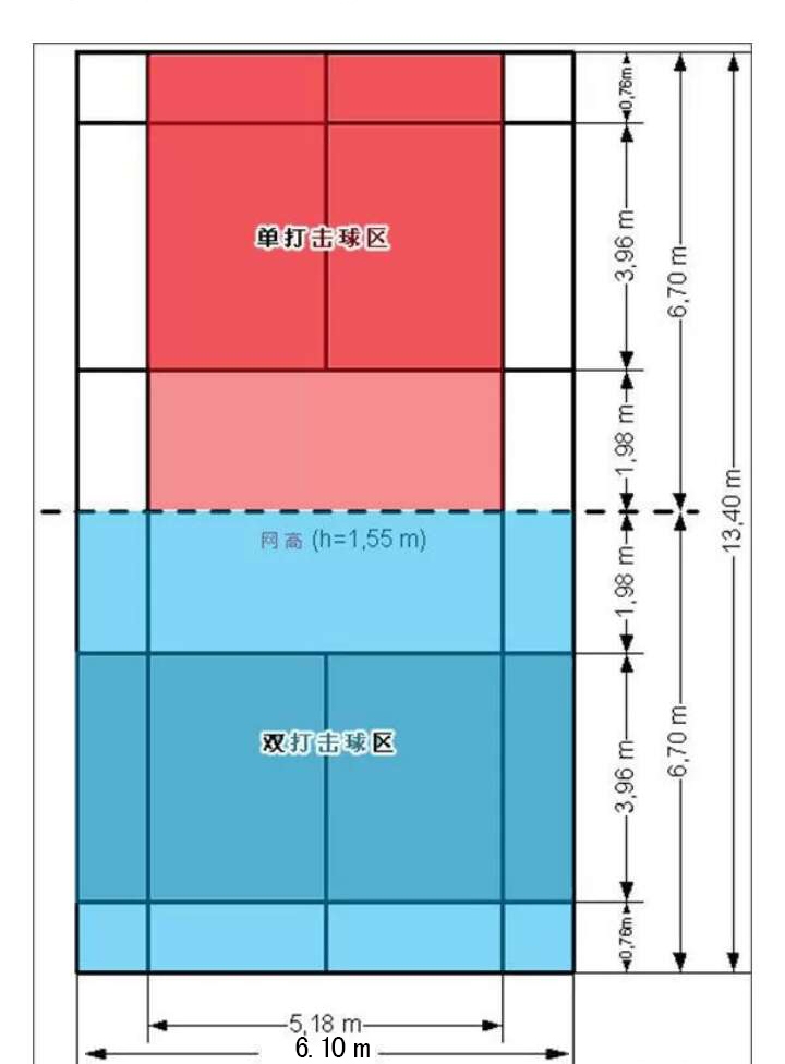 一、根据贵公司提供的尺寸,羽毛球场地为非标准场地,建议先满铺地板胶,然后再画场地线的原则。